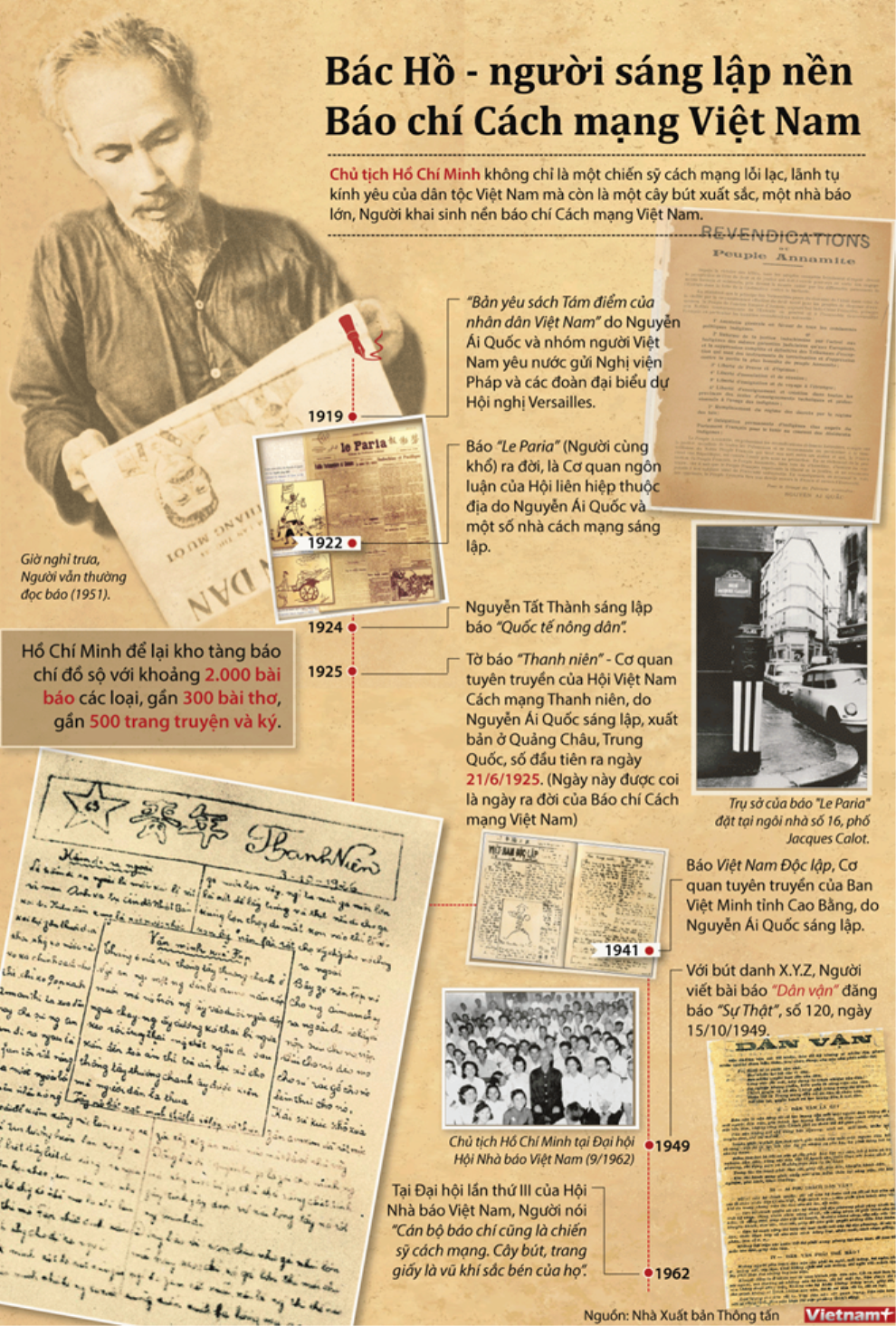 Dưới sự lãnh đạo của Đảng, thực hiện lời dạy của Bác Hồ muôn vàn kính yêu, 99 năm qua, báo chí cách mạng Việt Nam đã nỗ lực phấn đấu, thể hiện rõ vai trò, sứ mệnh của mình trước vận mệnh của đất nước. Nhiều đồng chí lãnh đạo của Đảng, Nhà nước đã dùng báo chí như là vũ khí đấu tranh, công cụ tuyên truyền, phương thức lãnh đạo cách mạng, trở thành những nhà báo, nhà lãnh đạo báo chí xuất sắc như Hồ Chí Minh, Trường Chinh, Huỳnh Thúc Kháng, Xuân Thủy, Hoàng Tùng, Lưu Quý Kỳ, Hà Đăng, Hồng Hà, Hữu Thọ, Đào Tùng, Trần Lâm, Quang Đạm, Trần Công Mân, Trần Bạch Đằng, Nguyễn Thành Lê, Phan Quang, Huỳnh Văn Tiểng… Hàng trăm nhà báo đã chiến đấu, hy sinh anh dũng trong tư thế của người chiến sỹ thời chống Pháp và chống Mỹ như Nam Cao, Trần Đăng, Thôi Hữu, Hoàng Lộc, Thâm Tâm, Hồng Nguyên, Nguyễn Thi, Nguyễn Mỹ, Lê Anh Xuân, Dương Thị Xuân Quý, Trương Thị Mai, Nguyễn Thị Thanh Xuân, Lương Nghĩa Dũng, Nguyễn Ngọc Tứ, Trần Viết Thuyên, Phạm Minh Tước, Trương Công Nghĩa,…và hàng trăm nhà báo - liệt sỹ khác.