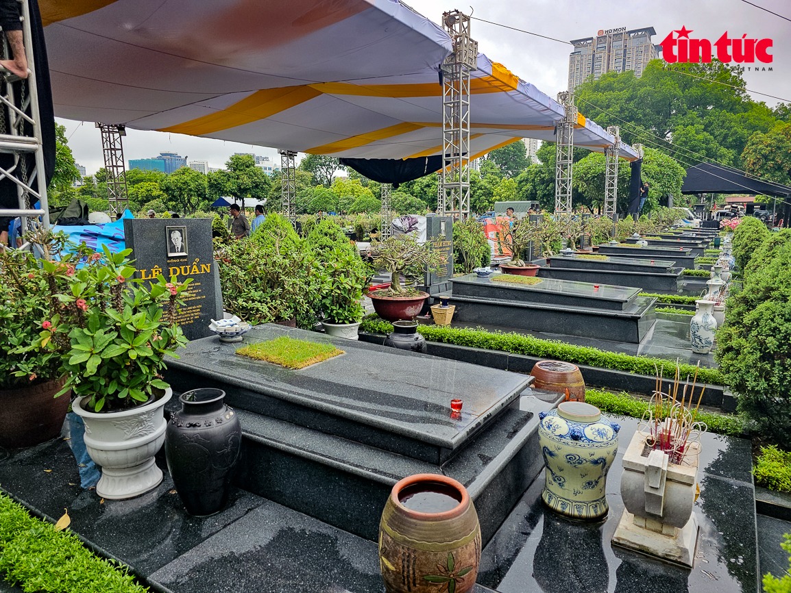 Hình ảnh phóng viên ghi nhận công tác chuẩn bị cho Lễ an táng tại Nghĩa trang Mai Dịch: