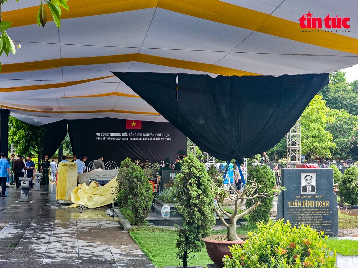 Khu vực nhà bạt phục vụ Lễ an táng Tổng bí thư Nguyễn Phú Trọng được dựng lên ở phía bên phải của Đài Tổ quốc ghi công, phía sau phần mộ của cố Tổng Bí thư Lê Duẩn, cố Tổng Bí thư Lê Khả Phiêu...