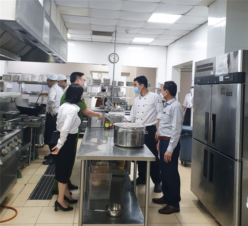 Đoàn kiểm tra của Chi cục An toàn vệ sinh thực phẩm tỉnh kiểm tra tại FLC Grand Hạ Long.