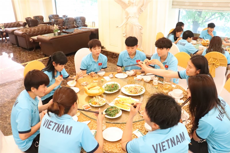 Bữa ăn của đội tuyển bóng đá nữ Việt Nam tại khách sạn Hải Yến (TP Cẩm Phả) đảm bảo vệ sinh ATTP.