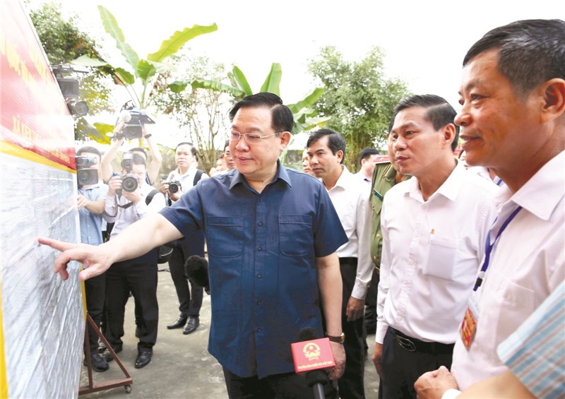Chủ tịch Quốc hội Vương Đình Huệ - Chủ tịch Hội đồng Bầu cử Quốc gia, kiểm tra công tác chuẩn bị bầu cử tại xã Kiến Thiết, huyện Tiên Lãng, TP. Hải Phòng ngày 13.4 (Ảnh: Trung Thành)