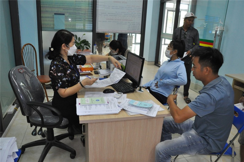 Song song với đó, Trung tâm cũng tiếp nhận làm hồ sơ hưởng TCTN cho NLĐ tại bộ phận đón tiếp làm thủ tục của trung tâm. Tại đây, NLĐ được hướng dẫn, hỗ trợ làm thủ tục một cách nhanh, gọn nhất. Bên cạnh đến trung tâm làm thủ tục, NLĐ còn có thể nộp hồ sơ trên cổng dịch vụ công.