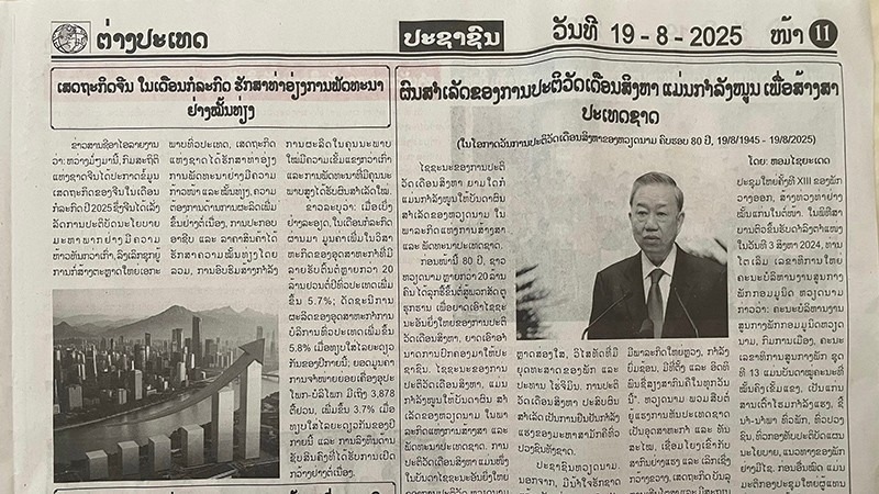 Báo Pasaxon, Tiếng nói của Trung ương Đảng Nhân dân Cách mạng Lào số ra ngày 19/8/2025 đăng bài xã luận ca ngợi thắng lợi vĩ đại của cuộc Tổng khởi nghĩa Tháng Tám năm 1945 của nhân dân Việt Nam.