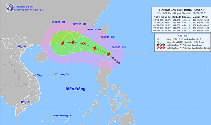 Vị trí và hướng di chuyển của bão Saola. (Nguồn: nchmf.gov.vn)