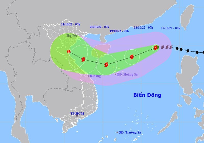 Theo Trung tâm Dự báo khí tượng thủy văn quốc gia, hồi 7 giờ ngày 17/10, vị trí tâm bão cách quần đảo Hoàng Sa khoảng 600km về phía Đông Bắc. Sức gió mạnh nhất vùng gần tâm bão mạnh cấp 11-12 (103-133km/giờ), giật cấp 14, di chuyển theo hướng Tây Tây Nam với tốc độ khoảng 15-20km/giờ.