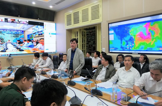 Thông tin từ cuộc họp cho biết bão di chuyển theo hướng Bắc, dự báo sẽ suy yếu nhưng trên biển ảnh hưởng của bão vẫn hết sức nguy hiểm đối với tàu thuyền - Ảnh: VGP/Đỗ Hương