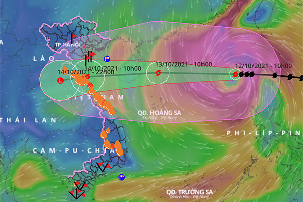 Lúc 10h hôm nay, vị trí tâm bão cách quần đảo Hoàng Sa khoảng 720km về phía Đông Đông Bắc. Sức gió mạnh nhất vùng gần tâm bão mạnh cấp 10-11 (90-120km/giờ), giật cấp 13. Bán kính gió mạnh từ cấp 6, giật từ cấp 8 trở lên khoảng 350km tính từ tâm bão.
