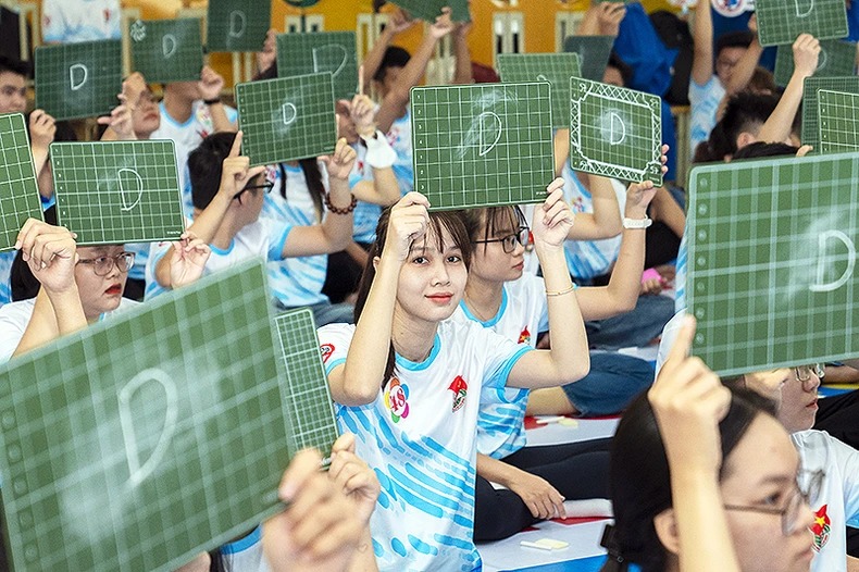 Đoàn viên, thanh niên tại cuộc thi Rung chuông vàng tìm hiểu về tác hại của thuốc lá trong khuôn khổ Ngày hội.