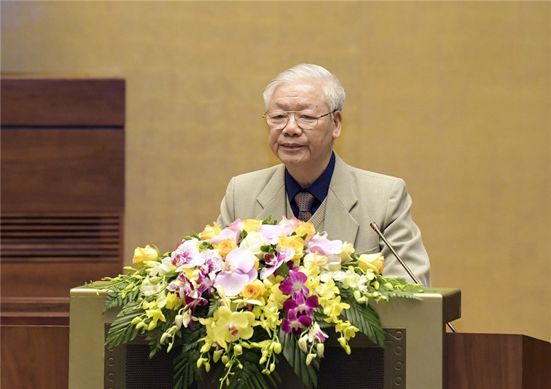 Trong quá trình này, Tổng Bí thư, Chủ tịch nước Nguyễn Phú Trọng lưu ý, cần chú trọng quán triệt thật tốt những quan điểm, tư tưởng chỉ đạo và những chủ trương, chính sách lớn mà Đại hội đại biểu toàn quốc lần thứ XIII của Đảng đề ra về tăng cường xây dựng, chỉnh đốn Đảng và hệ thống chính trị, trong đó có Quốc hội và HĐND các cấp, trong sạch, vững mạnh, nhất là trong công tác cán bộ, chọn những cán bộ xứng đáng để nhân dân bầu ra được những đại biểu Quốc hội, đại biểu HĐND các cấp thật sự xứng đáng, có đủ đức, đủ tài, đủ trình độ, phẩm chất, năng lực ngang tầm nhiệm vụ, góp phần tích cực vào việc thực hiện Nghị quyết Đại hội của Đảng, trong đó có kế hoạch phát triển kinh tế - xã hội 5 năm 2021-2025, cũng là kỷ niệm 50 năm giải phóng miền Nam, thống nhất đất nước và thực hiện chiến lược phát triển kinh tế-xã hội 10 năm 2021-2030, kỷ niệm 100 năm thành lập Đảng và tầm nhìn đến năm 2045 kỷ niệm 100 năm thành lập nước Việt Nam Dân chủ Cộng hòa, nay là Cộng hòa Xã hội Chủ nghĩa Việt Nam.