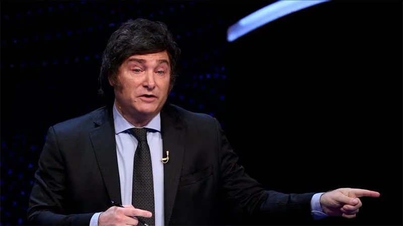 Ông Javier Milei trong cuộc tranh luận trước thềm cuộc bầu cử ngày 19/11 vừa qua. Ảnh: Reuters