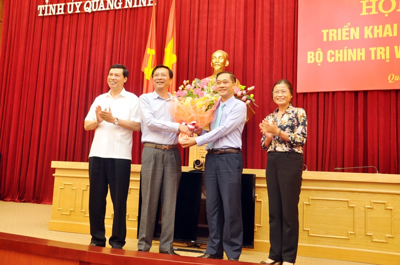 Các đồng chí lãnh đạo tỉnh tặng hoa chúc mừng đồng chí Vũ Hồng Thanh.