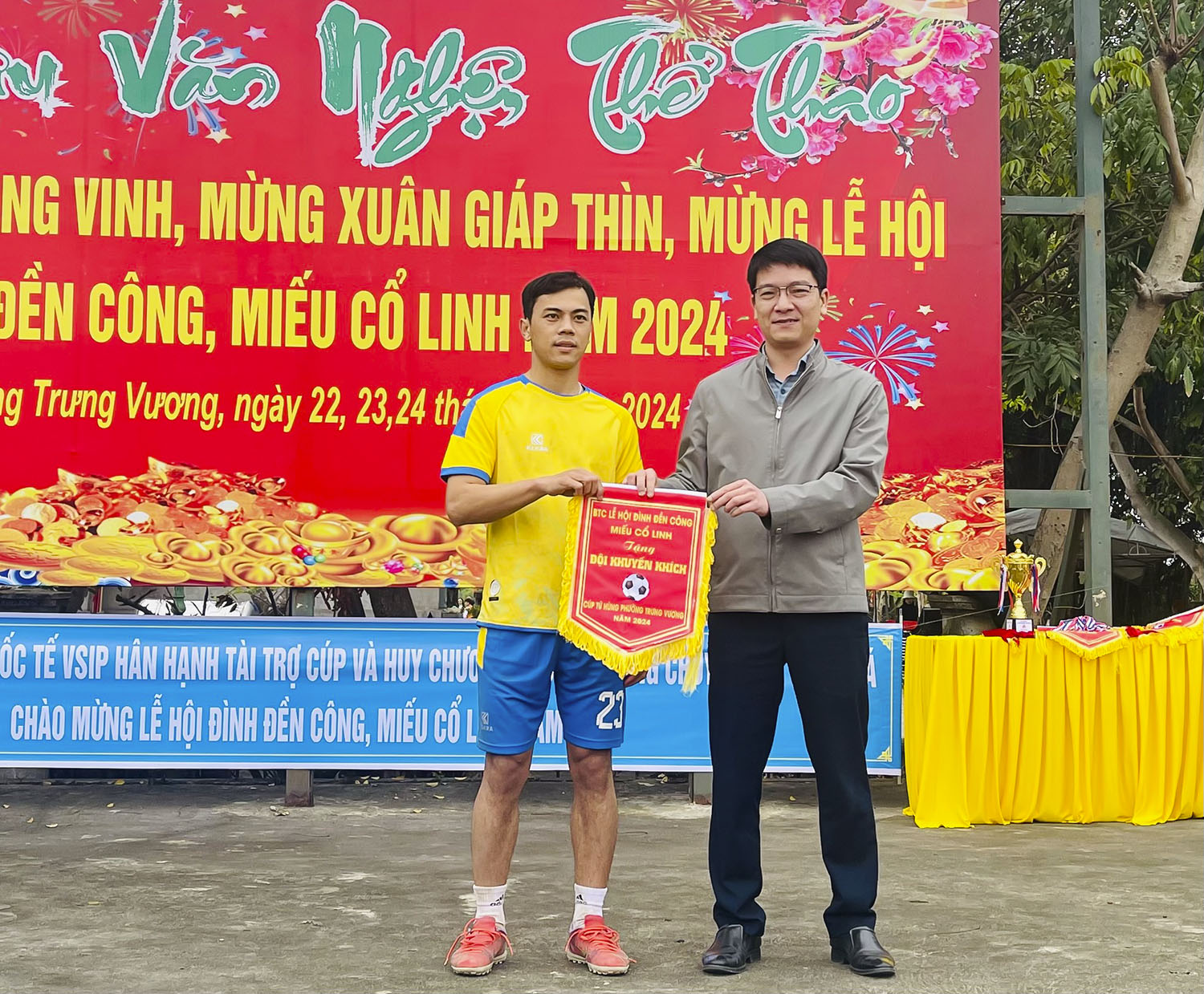 Ngày 24/2, tại sân vận động thể thao Đền Công, phường Trưng Vương tổ chức Bế mạc giải bóng đá cúp Tứ Hùng năm 2024. Đây là hoạt động điểm nhấn trong chuỗi hoạt động văn hóa thể thao mừng Đảng mừng Xuân Giáp Thìn, chào mừng Lễ hội đình Đền Công và miếu Cổ Linh năm 2024.