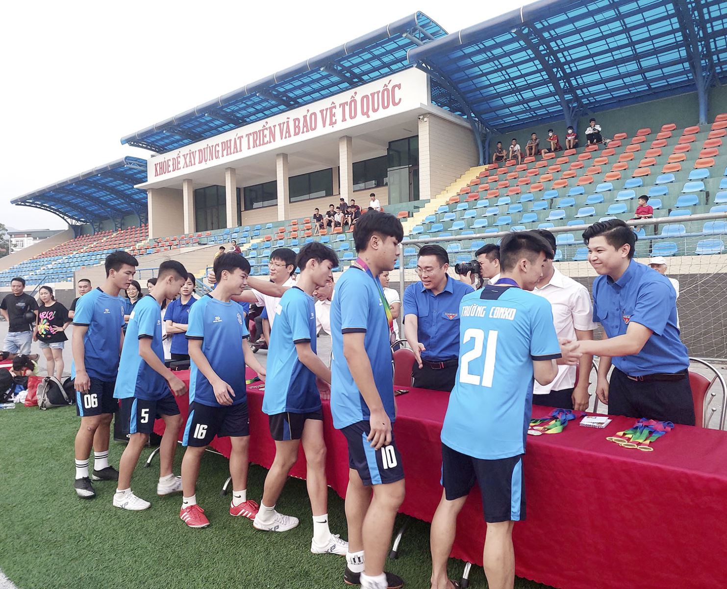 BTC trao huy chương cho các đội bóng tại lễ bế mạc giải.