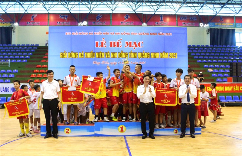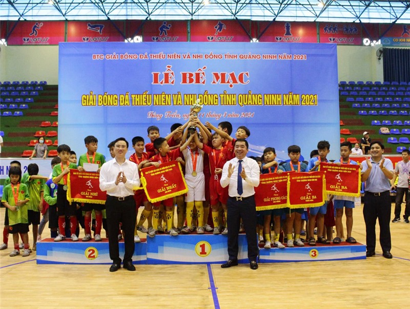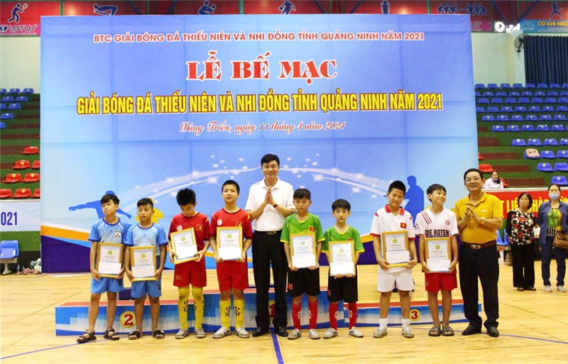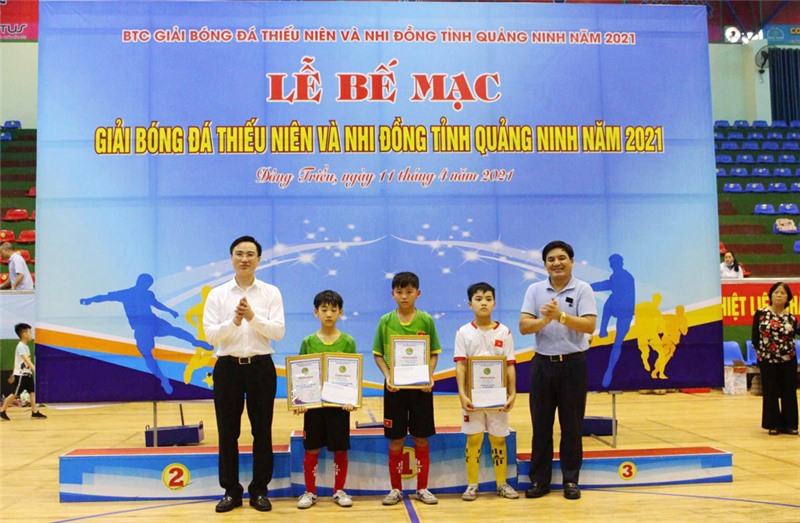 Sau 5 ngày thi đấu, sáng 11/4, tại Nhà thi đấu Trung tâm Văn hóa - Thể thao TX Đông Triều, Ban tổ chức Giải Bóng đá Thiếu niên và Nhi đồng tỉnh Quảng Ninh năm 2021 đã tổ chức bế mạc và trao thưởng cho các đội bóng đạt thành tích.