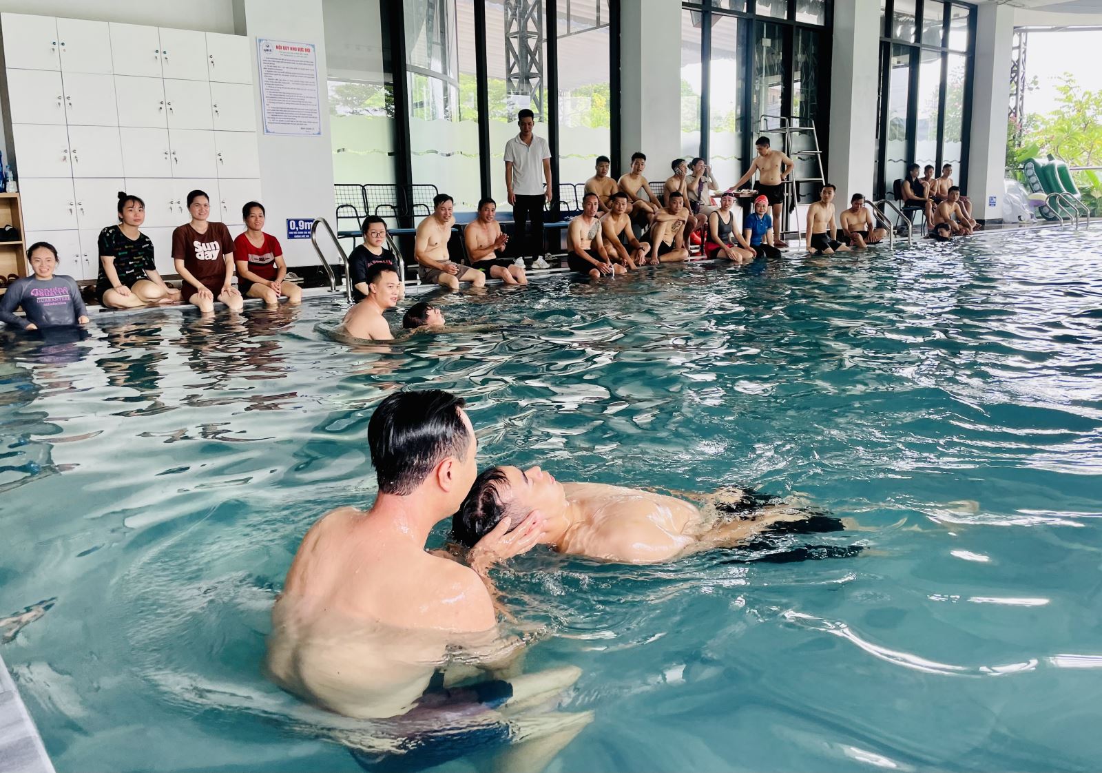 Học viên tiếp thu kỹ thuật cứu đuối tại lớp tập huấn.