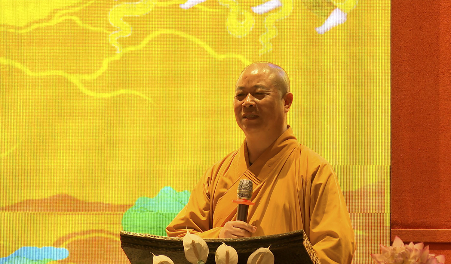 Thượng toạ Thích Đạo Hiển - Phó Trưởng Ban, kiêm Chánh thư ký Ban Trị sự Phật giáo Việt Nam tỉnh Quảng Ninh phát biểu tại lễ bế mạc.
