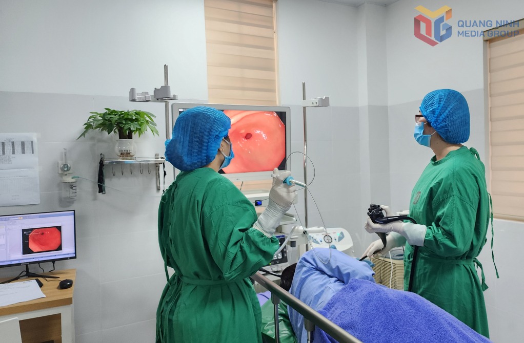 Kíp y, bác sĩ Bệnh viện Việt Nam - Thụy Điển Uông Bí thực hiện nội soi can thiệp, ứng dụng thiết bị hiện đại trong chẩn đoán và điều trị.