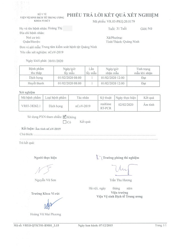 Ngay sau khi tiếp nhận 2 trường hợp trên, bệnh viện đã nhanh chóng cách ly người bệnh, thực hiện đúng theo quy trình Bộ Y tế ban hành, tiến hành lấy mẫu bệnh phẩm gửi Viện vệ sinh dịch tễ Trung Ương xét nghiệm. Trong quá trình chờ kết quả, người bệnh được điều trị, cách ly và theo dõi chặt chẽ tình trạng sức khỏe. Kết quả xét nghiệm cho thấy, cả hai trường hợp đều âm tính với Virus Corona.