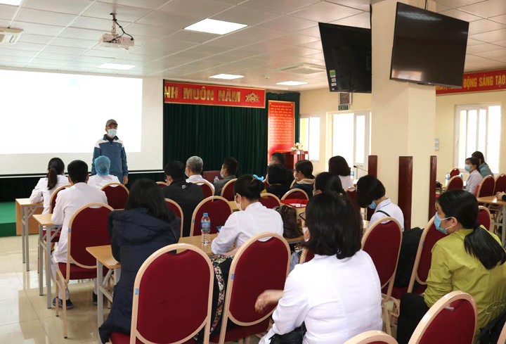 Ts.Bs. Trần Viêt Tiệp gặp gỡ nhân viên y tế trước giờ đi làm nhiệm vụ.