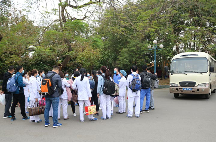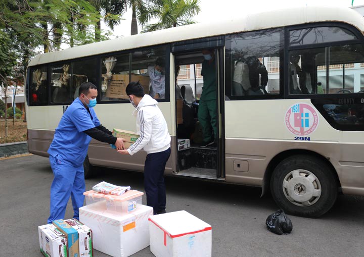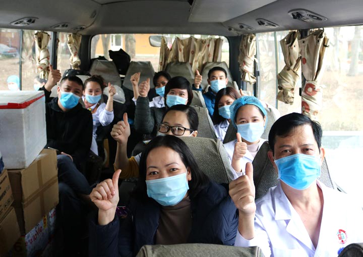 60 cán bộ, nhân viên y tế Bệnh viện Việt Nam – Thụy Điển Uông Bí nhanh chóng xuất phát đến các điểm nóng để làm công tác chống dịch.