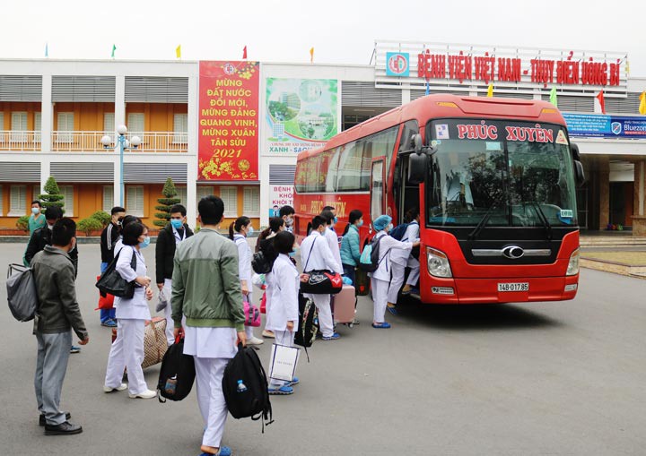 Trước khi đoàn các y bác sỹ lên đường thực hiện nhiệm vụ, Ts.Bs. Trần Viết Tiệp - Giám đốc Bệnh viện đã biểu dương khen ngợi tinh thần hăng hái tham gia chống dịch, vì dân phục vụ của đội ngũ nhân viên y tế bệnh viện. Đây là nhiệm vụ, là trách nhiệm không chỉ của riêng cá nhân nào mà là của toàn xã hội. Trong cuộc chiến chống dịch thì những nhân viên y tế sẽ như là những chiến sĩ sẵn sàng lên đường chống giặc.