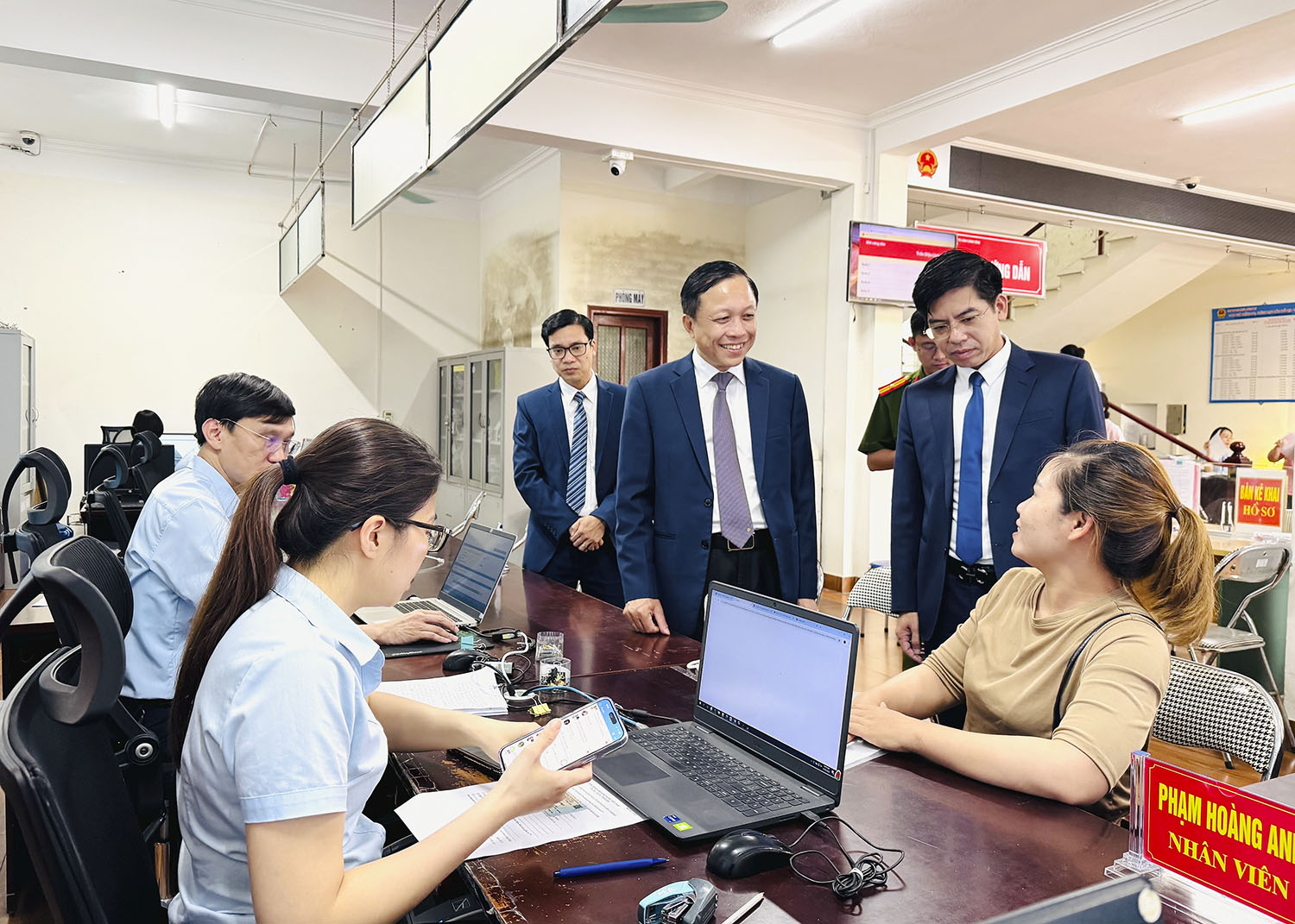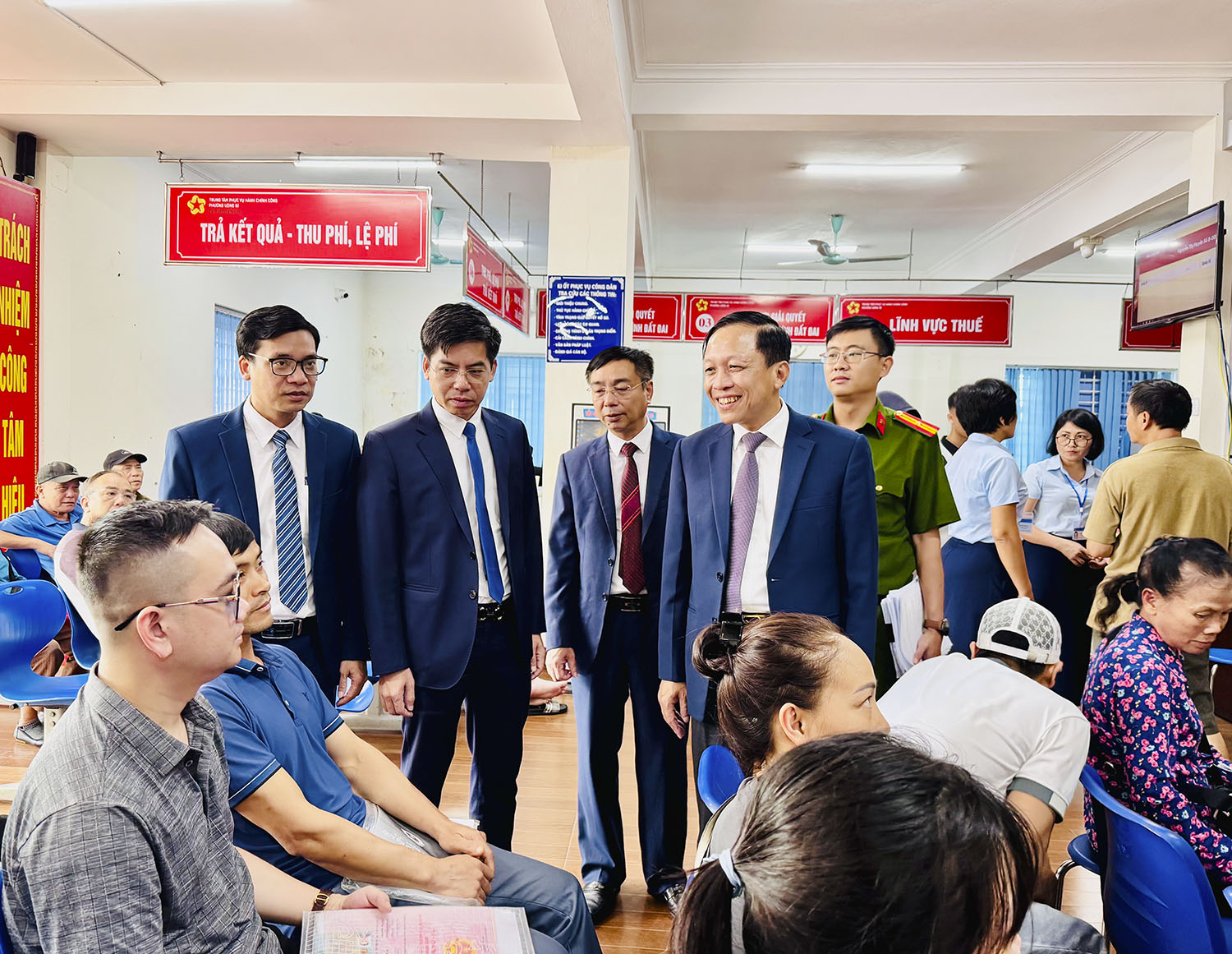 Bí thư Đảng ủy Nguyễn Chiến Thắng kiểm tra hoạt động tiếp dân trong ngày đầu vận hành chính quyền hai cấp