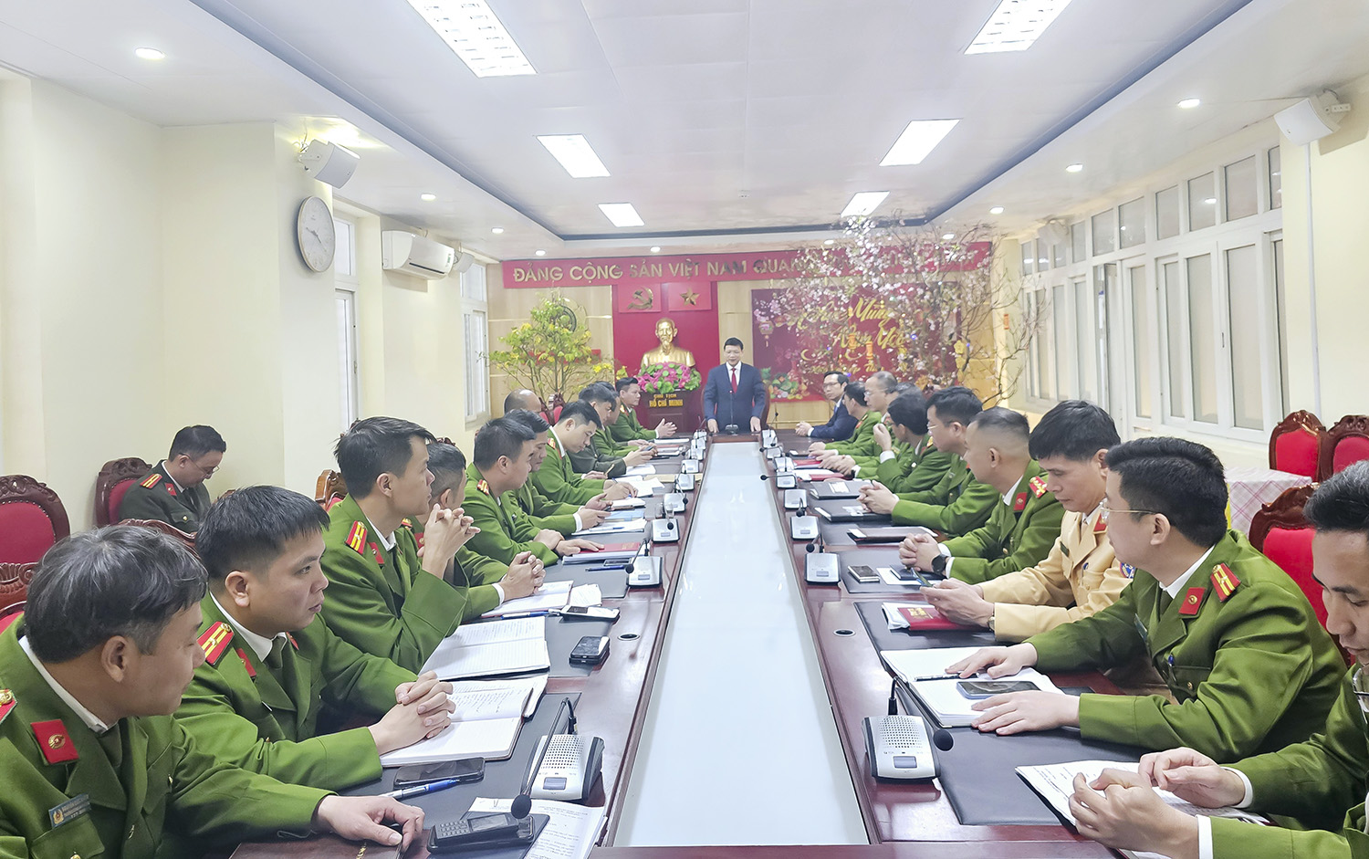 Phát biểu tại buổi gặp mặt, Bí thư Thành ủy Uông Bí Nghiêm Xuân Cường lưu ý, Công an thành phố tiếp tục thực hiện các nghị quyết của cấp trên; đẩy mạnh xây dựng lực lượng Công an thành phố Uông Bí trong sạch, vững mạnh, chính quy, tinh nhuệ, hiện đại, đáp ứng yêu cầu, nhiệm vụ trong tình hình mới; tập trung chỉ đạo làm tốt công tác bảo đảm an ninh; không để bị động, bất ngờ; nâng cao hiệu lực, hiệu quả công tác quản lý nhà nước về an ninh trật tự, gắn với cải cách thủ tục hành chính nhằm tạo điều kiện thuận lợi cho người dân và doanh nghiệp… Trước mắt tập trung thực hiện tốt cao điểm tấn công trấn áp tội phạm, đảm bảo an ninh, an toàn cho Nhân dân vui Xuân, đón Tết.