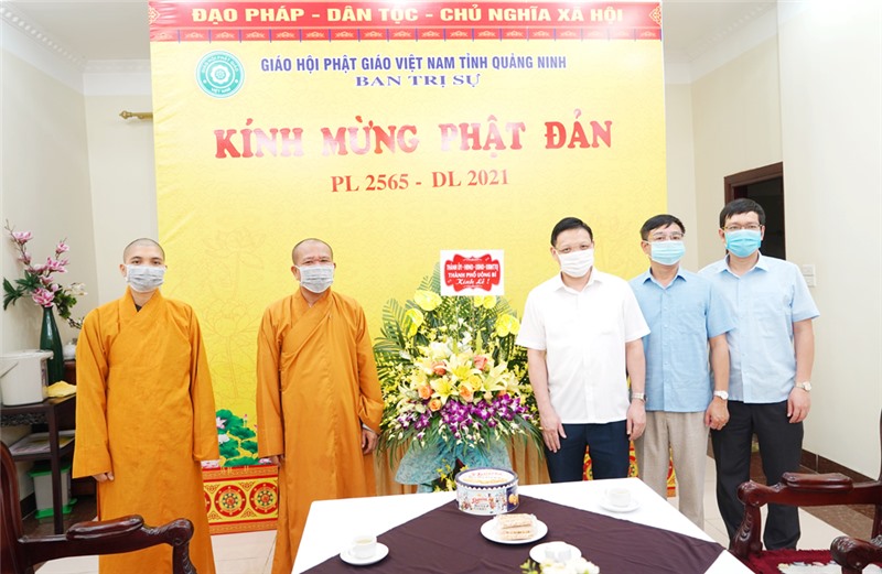 Bí thư Thành ủy Nghiêm Xuân Cường chúc mừng Ban trị sự Tỉnh hội Phật giáo Quảng Ninh nhân ngày Phật đản PL 2565 - DL 2021