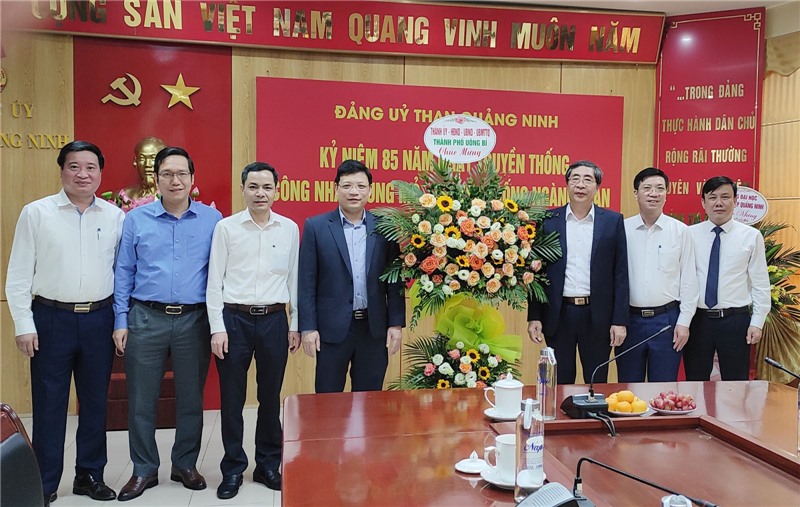 Đồng chí Nghiêm Xuân Cường, Tỉnh ủy viên, Bí thư Thành ủy, Chủ tịch HĐND thành phố chúc mừng Đảng ủy than Quảng Ninh nhân Kỷ niệm 85 năm Ngày Truyền thống Công nhân Vùng mỏ - Truyền thống ngành Than.