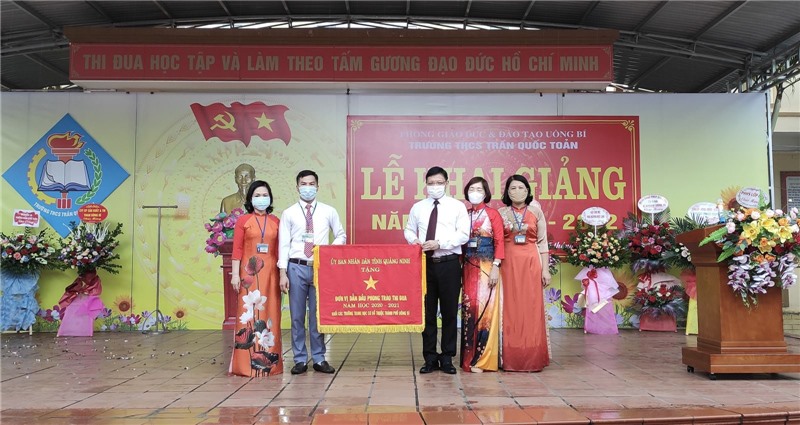 Năm học 2020 - 2021, Trường THCS Trần Quốc Toản vinh dự được nhận cờ đơn vị dẫn đầu phong trào thi đua khối THCS của thành phố Uông Bí do UBND tỉnh trao tặng.