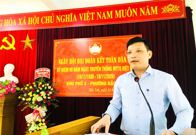 Kỷ niệm 90 năm Ngày truyền thống Mặt trận Tổ quốc Việt Nam 18-11 (1930-2020), sáng ngày 14-11, đồng chí Nghiêm Xuân Cường, Tỉnh ủy viên, Bí thư Thành ủy dự và chung vui Ngày hội Đại đoàn kết toàn dân tộc với cán bộ, nhân dân khu 3, phường Bắc Sơn. Cùng dự có đồng chí Đào Ngọc Sơn, UVBTV, Trưởng Ban Dân vận Thành ủy, Chủ tịch MTTQ thành phố.