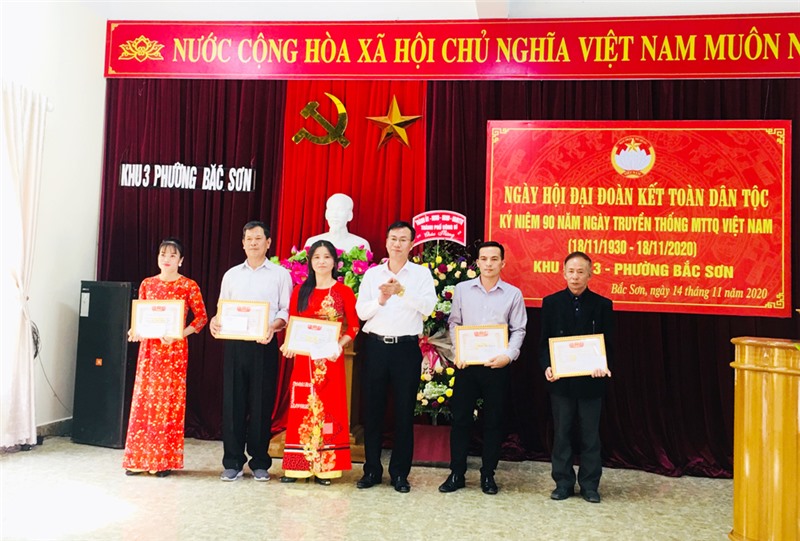 Nhân dịp này, phường Bắc Sơn khen thưởng khu 3 đạt danh hiệu “Khu văn hóa” và 5 gia đình đạt danh hiệu gia đình văn hóa 3 năm liên tục; khu 3 biểu dương 23 gia đình văn hóa tiêu biểu năm 2020.