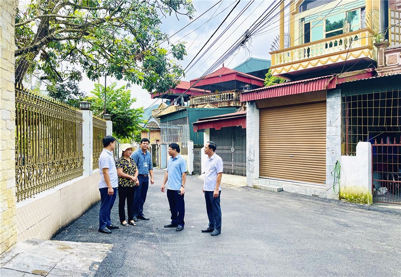 Đồng chí Nghiêm Xuân Cường, Tỉnh ủy viên, Bí thư Thành ủy, Chủ tịch HĐND thành phố kiểm tra công trình chỉnh trang đô thị tại khu 6, phường Vàng Danh.
