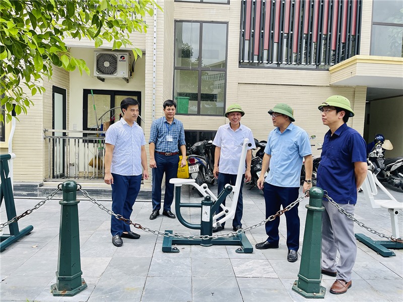 Lãnh đạo Thành ủy kiểm tra thực tế công trình chỉnh trang sân nhà văn hoá khu 3, phường Vàng Danh.