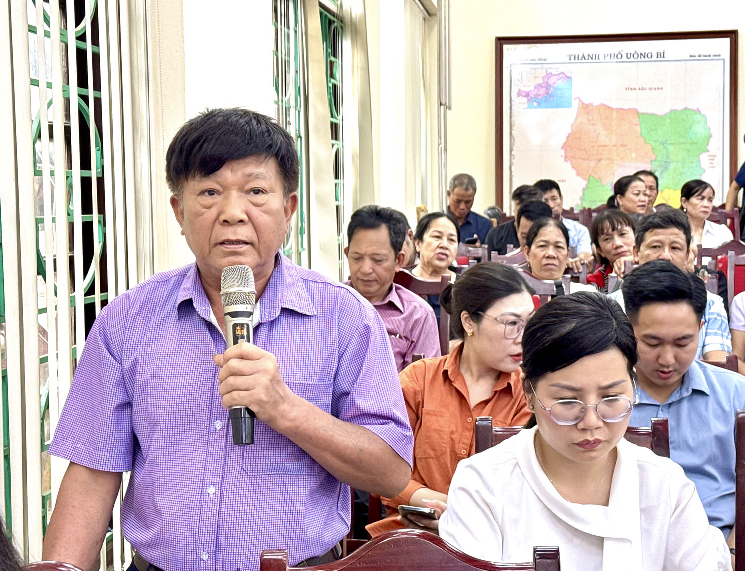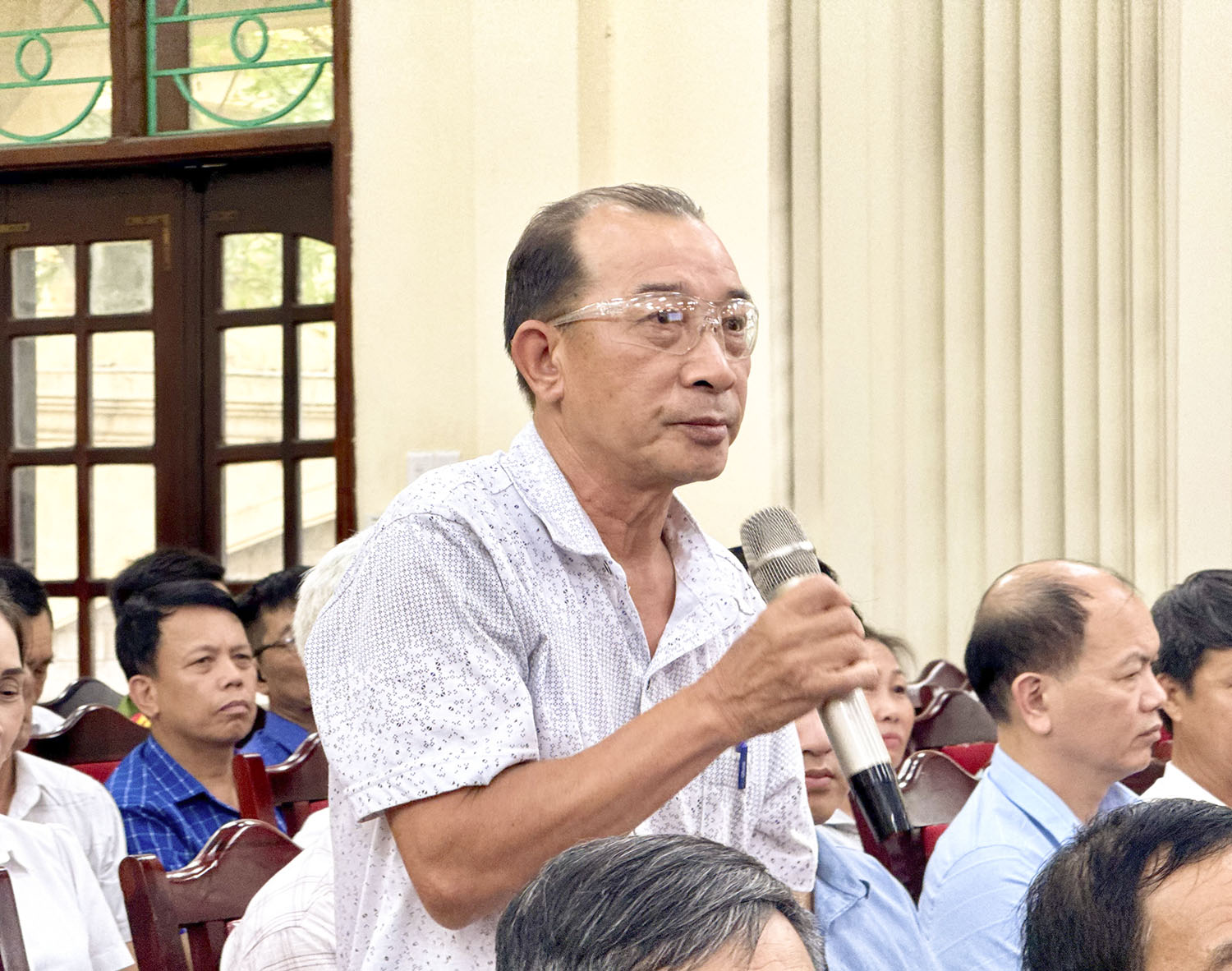 Cử tri phường Vàng Danh kiến nghị một số nội dung liên quan đến đầu tư xây dựng trụ sở làm việc mới, khắc phục hậu quả thiên tai, chỉnh trang đô thị, nâng cấp hạ tầng giao thông và hệ thống chiếu sáng, truyền thanh cơ sở...