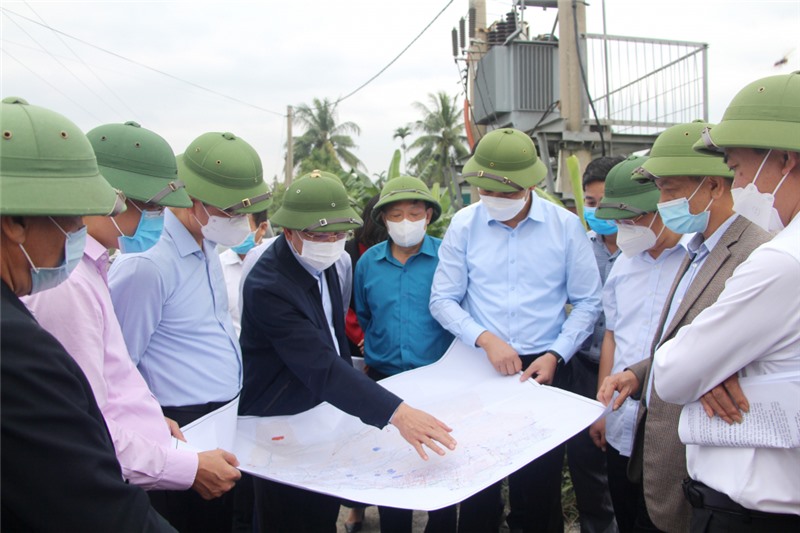 Đồng chí Nguyễn Xuân Ký, Ủy viên Trung ương Đảng, Bí thư Tỉnh ủy, Chủ tịch HĐND tỉnh kiểm tra công tác GPMB dự án đoạn đi qua TX Quảng Yên.