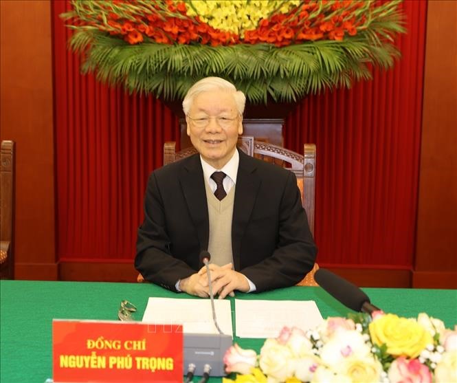Thay mặt Bộ Chính trị, Ban Bí thư, Tổng Bí thư, Chủ tịch nước Nguyễn Phú Trọng chúc các đồng chí nguyên Ủy viên Bộ Chính trị, Ban Bí thư, nguyên Ủy viên Trung ương Đảng khóa XII, cùng gia đình luôn mạnh khỏe, hạnh phúc, an khang, thịnh vượng.