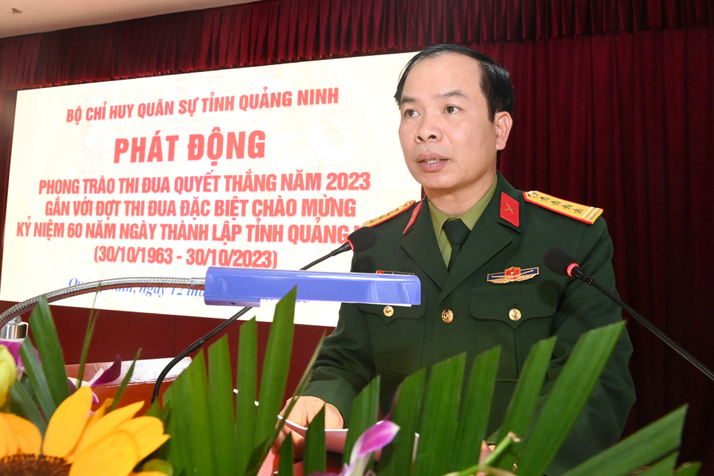 Đại tá Nguyễn Quang Hiến, Phó Bí thư Thường trực Đảng ủy, Chính ủy Bộ CHQS tỉnh Quảng Ninh phát động phong trào TĐQT năm 2023 gắn với đợt thi đua đặc biệt chào mừng kỷ niệm 60 năm thành lập tỉnh Quảng Ninh.