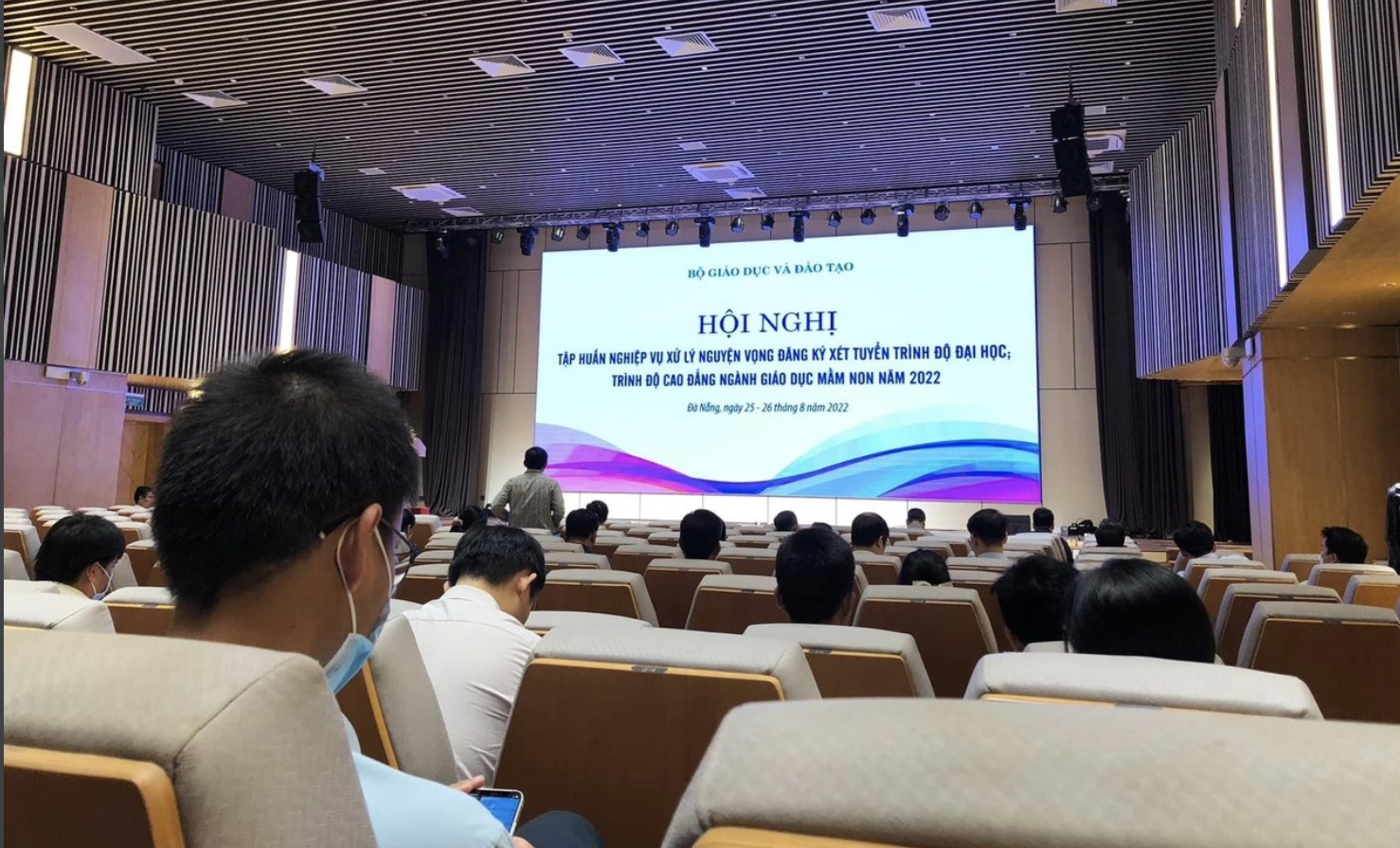 Bộ GDĐT đang tổ chức Hội nghị tập huấn nghiệp vụ xử lý nguyện vọng đăng ký xét tuyển đại học, cao đẳng ngành giáo dục mầm non năm 2022 cho các đại học, học viện, trường đại học; các trường sĩ quan có đào tạo trình độ đại học; các trường cao đẳng tuyển sinh ngành Giáo dục Mầm non, gọi chung là các cơ sở đào tạo (CSĐT) trong cả nước. Hội nghị diễn ra tại Đà Nẵng trong hai ngày 25 và 26.8.
