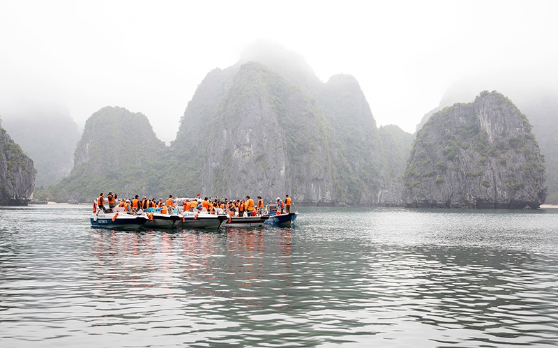 Đoàn làm phim Kong: Skull Island trên khu vực hòn Cọc Chèo, Vịnh Hạ Long trong những ngày bấm máy bộ phim. Ảnh: Khánh Giang