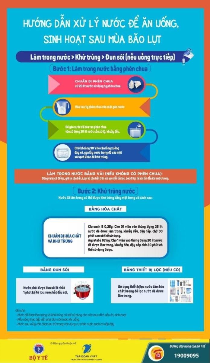 Bộ Y tế hướng dẫn xử lý nước, vệ sinh cá nhân, vệ sinh môi trường trong và sau mưa lũ