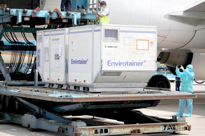 Lô vaccine AstraZenca vfe sân bay Tân Sơn Nhất ngày 29/7. Ảnh: Phong Lan.