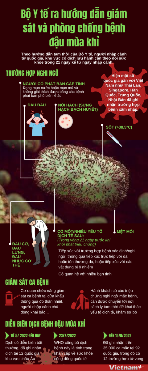 Ngày 22/8, Bộ Y tế đã ban hành quyết định hướng dẫn tạm thời giám sát và phòng chống bệnh đậu mùa khỉ.