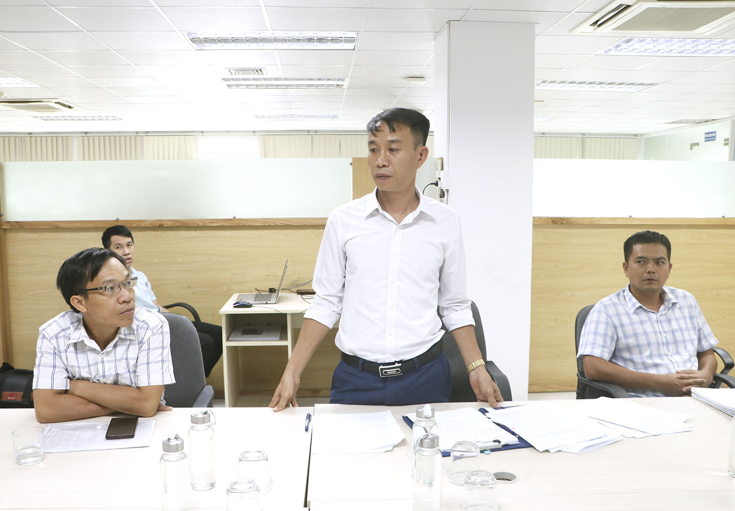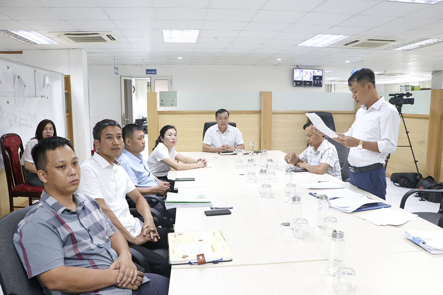 Nhân viên Trung tâm PTQĐ thành phố công bố các quyết định của UBND thành phố.