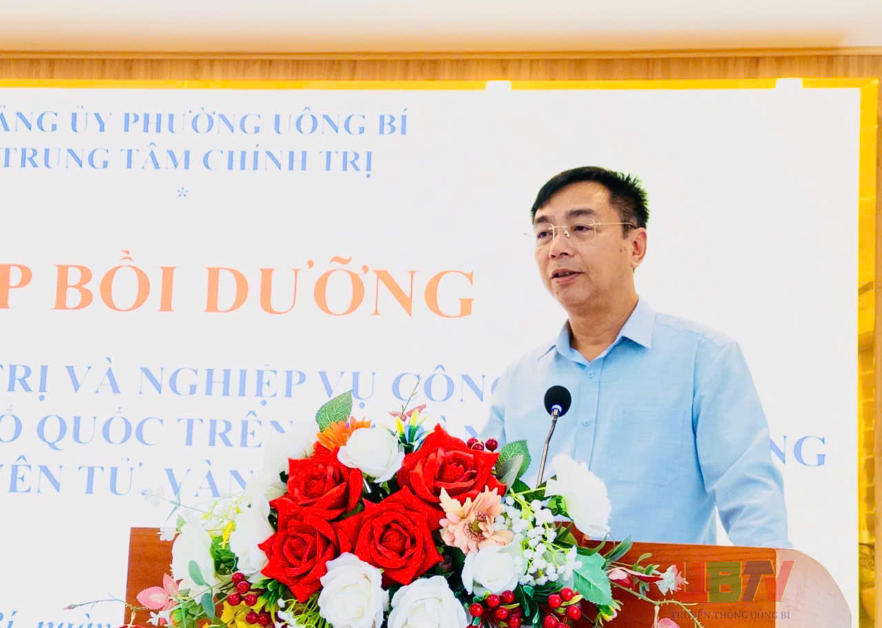 Phát biểu tại lễ khai giảng, đồng chí Đào Ngọc Sơn, Phó Bí thư Thường trực Đảng ủy phường Uông Bí nhấn mạnh: trong bối cảnh hiện nay, công tác Mặt trận ngày càng giữ vai trò quan trọng trong việc củng cố khối đại đoàn kết toàn dân, tăng cường niềm tin của nhân dân với Đảng và chính quyền. Do đó, việc bồi dưỡng lý luận chính trị và nghiệp vụ cho đội ngũ cán bộ Mặt trận ở cơ sở là yêu cầu thiết thực, góp phần nâng cao năng lực, bản lĩnh chính trị và kỹ năng công tác của cán bộ. Đồng chí đề nghị các học viên phát huy tinh thần trách nhiệm, nghiêm túc học tập, chủ động trao đổi, chia sẻ kinh nghiệm để vận dụng hiệu quả vào thực tiễn công tác tại địa phương.