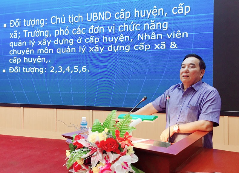 Giảng viên lớp học trình bày những nội dung quan trọng trong công tác quản lý nhà nước về trật tự xây dựng.