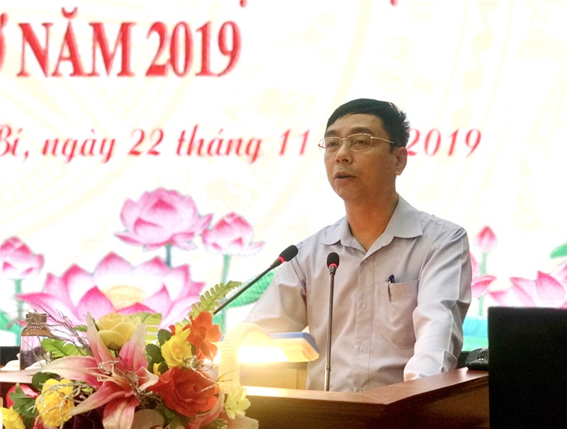 Báo cáo viên tỉnh truyền đạt một số nội dung của hội nghị.