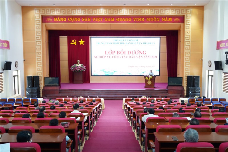 Trong thời gian 1 ngày, 169 đồng chí là cán bộ phụ trách công tác dân vận của các chi đảng bộ cơ sở, trưởng phó khối dân vận cơ sở; Bí thư, trưởng thôn, khu dân cư trên địa bàn thành phố được nghiên cứu 2 chuyên đề, gồm: chuyên đề thực hiện quy chế dân chủ, xây dựng mô hình điển hình quy chế dân chủ ở cơ sở trong các loại hình; chuyên đề kế hoạch triển khai chương trình hành động của Ban Dân vận Trung ương thực hiện NQ đại hội XIII của Đảng.