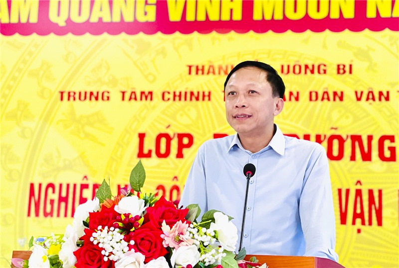Đồng chí đề nghị các học viên tham gia học tập nghiêm túc, đầy đủ, tích cực trao đổi, chia sẻ với các giảng viên và tích lũy thêm kiến thức, kinh nghiệm để áp dụng hiệu quả vào quá trình công tác tại địa phương, đơn vị.